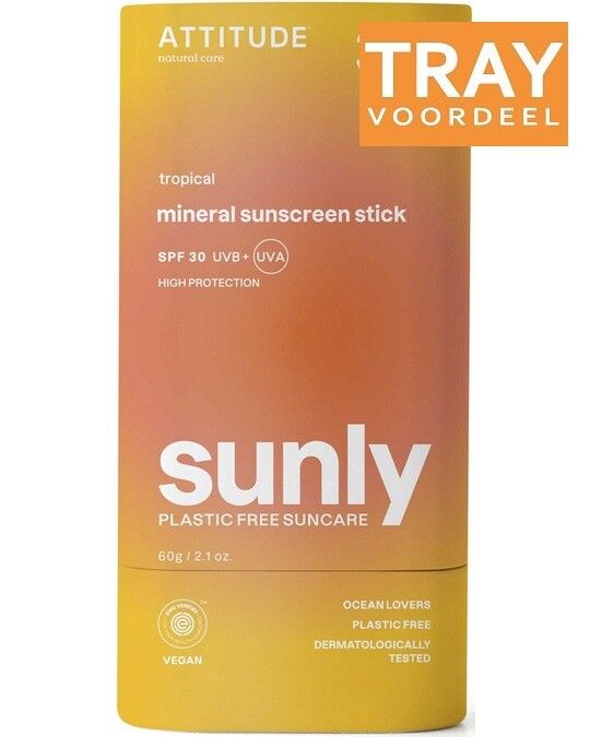 ATTITUDE SUNLY TROPICAL SPF 30 MINERAL SUNSCREEN STICK ZONNEBRAND STICK 6 X 60 GRAM