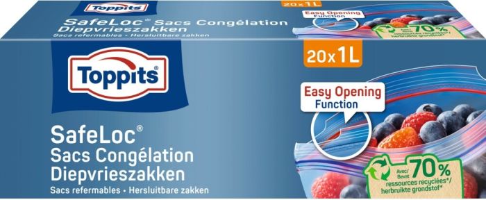 TOPPITS SAFELOC 1 LITER HERSLUITBARE DIEPVRIESZAKJES 20 STUKS