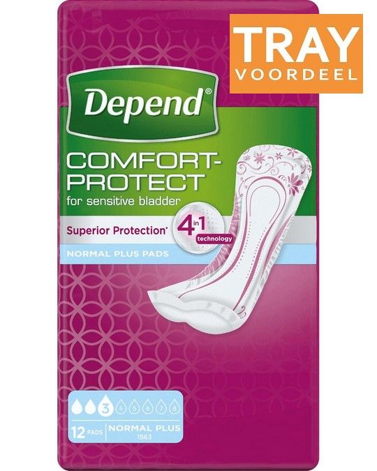 DEPEND COMFORT PROTECT NORMAL PLUS VERBAND TRAY 6 X 12 STUKS