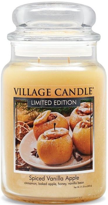 VILLAGE CANDLE SPICED VANILLA APPLE LIMITED EDITION GEURKAARS POT 602 GRAM