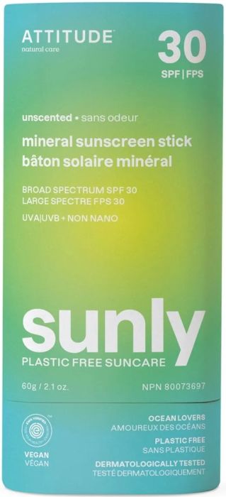 ATTITUDE SUNLY UNSCENTED SPF 30 MINERAL SUNSCREEN STICK ZONNEBRAND STICK 60 GRAM