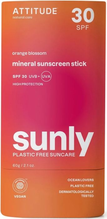 ATTITUDE SUNLY ORANGE BLOSSOM SPF 30 MINERAL SUNSCREEN STICK ZONNEBRAND STICK 60 GRAM