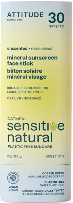 ATTITUDE SENSITIVE NATURAL UNSCENTED SPF 30 MINERAL SUNSCREEN FACE STICK ZONNEBRAND STICK 20 GRAM