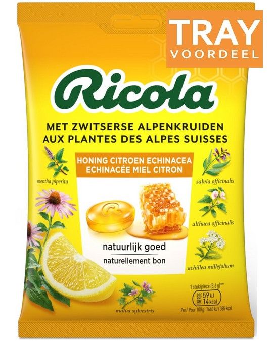 RICOLA HONING CITROEN ECHINACEA KRUIDENPASTILLES TRAY 12 X 75 GRAM
