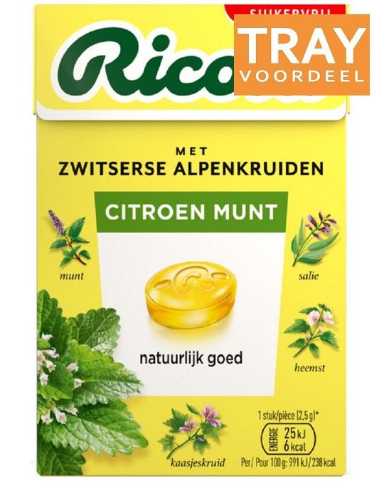 RICOLA CITROEN MUNT SUIKERVRIJ KRUIDENPASTILLES TRAY 20 X 50 GRAM