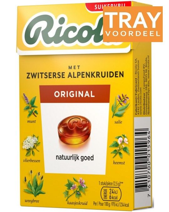 RICOLA ORIGINAL SUIKERVRIJ KRUIDENPASTILLES TRAY 120 X 50 GRAM