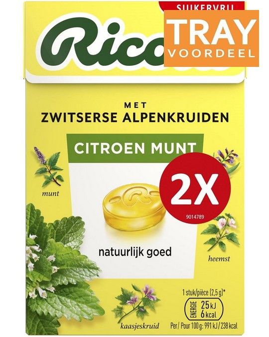 RICOLA CITROEN MUNT SUIKERVRIJ KRUIDENPASTILLES TRAY 10 X 100 GRAM