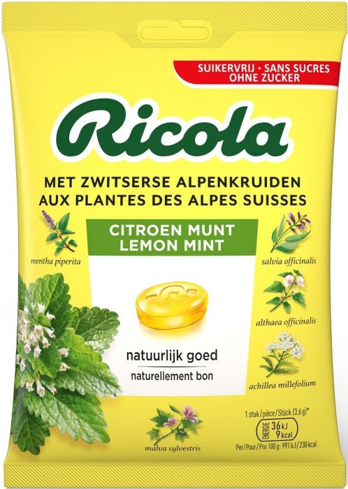 RICOLA CITROEN MUNT SUIKERVRIJ KRUIDENPASTILLES 75 GRAM