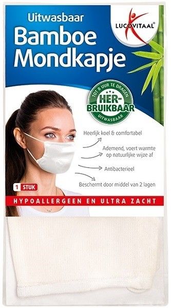 LUCOVITAAL BAMBOE MONDKAPJE WIT HERBRUIKBAAR 1 STUK