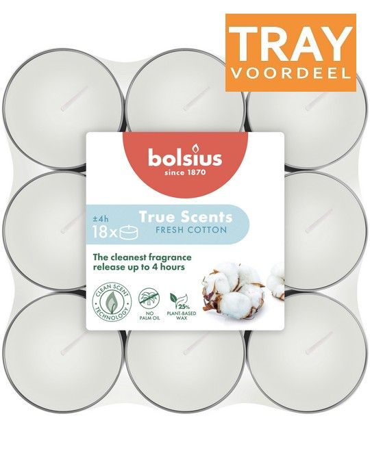 BOLSIUS TRUE SCENTS FRESH COTTON THEELICHTEN 8 X 18 STUKS