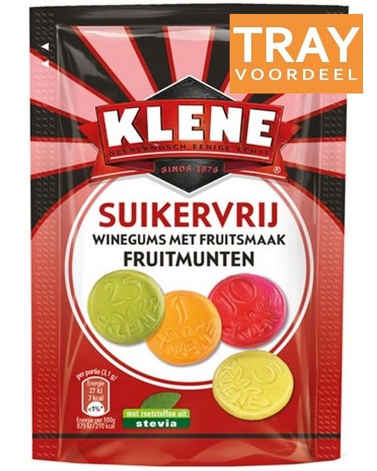 KLENE FRUITSMAAK FRUITMUNTEN SUIKERVRIJ WINEGUMS TRAY 12 X 110 GRAM